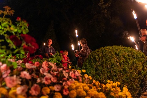 Lassen Sie sich verzaubern vom stimmungsvollen Flair des Gartens, erfahren Sie Wissenswertes zum historischen Parkensemble und erleben Sie Rosen im Fackelschein in einem Meer von Farben und Düften.