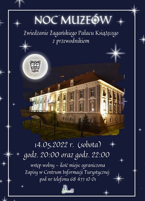Razem z Centrum Informacji Turystycznej w Żaganiu zapraszamy Państwa do zwiedzania Pałacu Książęcego z przewodnikiem, które odbędzie się 14 maja o godz. 20:00 oraz o godz. 22:00.